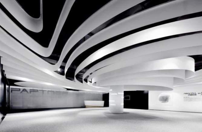 與一般的展廳相比,要采用科幻風格,這種展廳的裝修空間更加緊湊,更加炫酷,展廳區(qū)域一定要大,辦公區(qū)域和展廳區(qū)域風格一定要相融合。